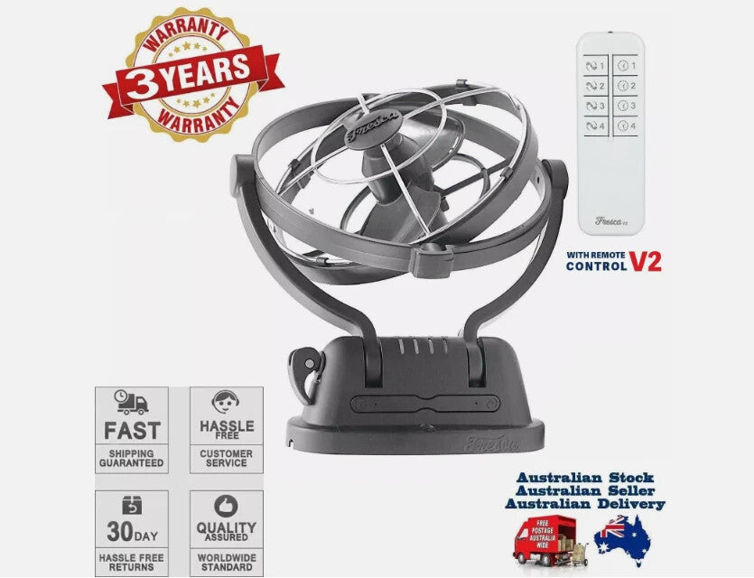Fresca Fan 12v 24v Volt Black Fresca AC Ultra Quiet 360° Directional Airflow
