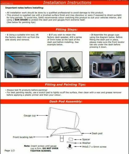 Attractive Australian made dash cover places 3 of your favorite SAAS 52mm gauges at an angle towards the driver for easy vision and readability.