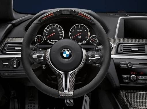 - - The sporty yet elegant design with three-colour stitching in the M colours and painted carbon goes perfectly with the M Performance look.