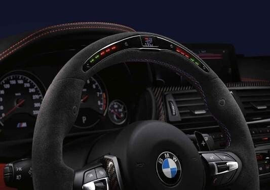 - - Sporty: The new M Performance steering wheel conveys motor racing atmosphere through the high-tech materials from Motorsport Alcantara and Carbon.