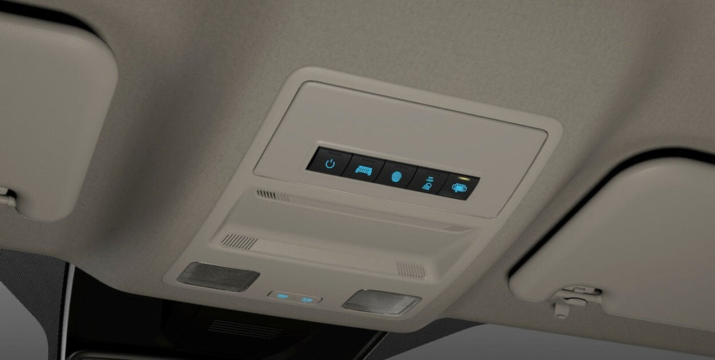 - Features an integrated switch housing that replaces the vehicle’s overhead sunglass holder and matches the interior trim of the vehicle.