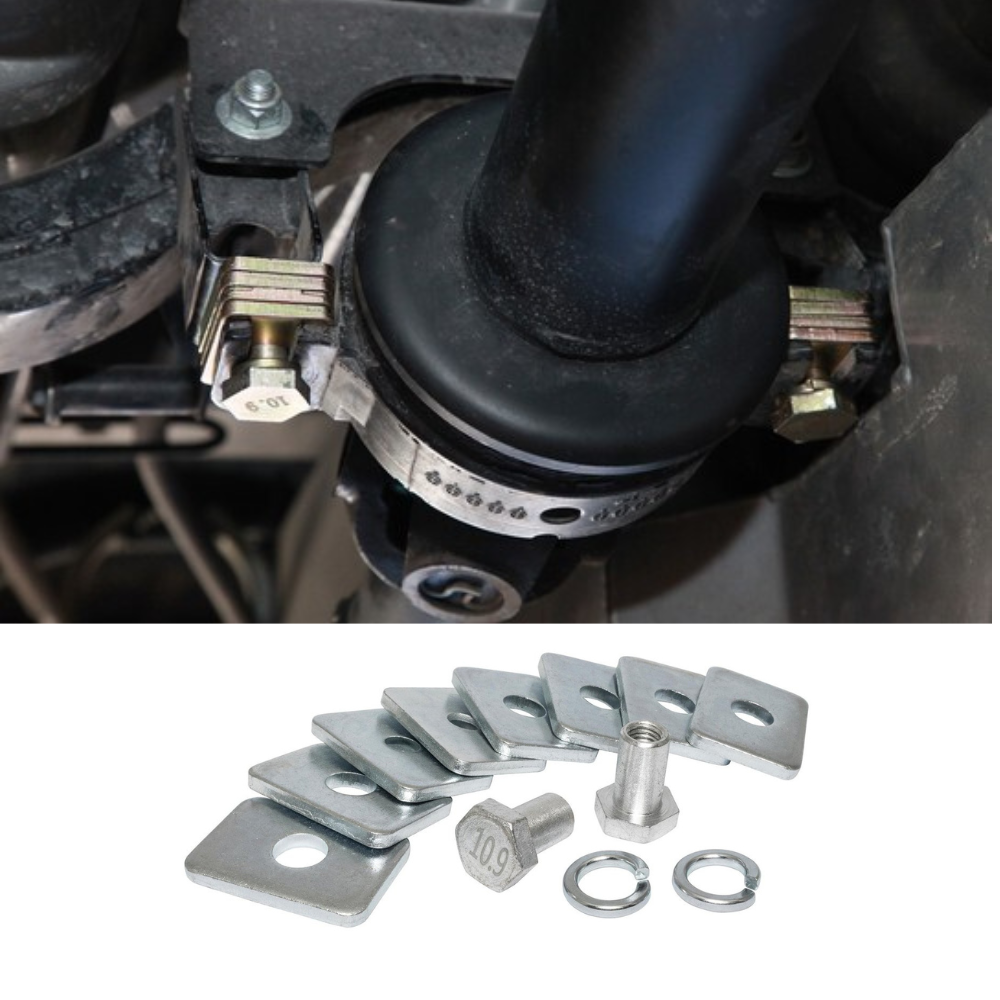 The spacer kit lowers the centre bearing to reduce tailshaft angle and reduce vibration to a satisfactory level.