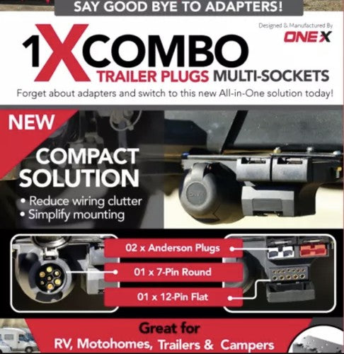 Onex Combo Trailer Plug INC 2 X Anderson Plugs 1 X 7 Pin Round 1 X 12 Pin Flat
