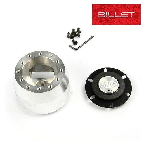 Beautifully machined from a solid 6061-T6 billet, these aluminium hubs are presented with a polished finish. SAAS billet boss kits compliment other custom fittings such as billet steering columns, our polished centre steering wheels or simply as a standalone feature.