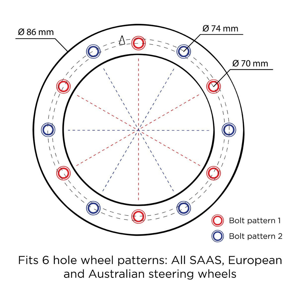 - Dual Mount pattern to suit SAAS, MOMO, Nardi wheel patterns (70mm/74mm PCD)