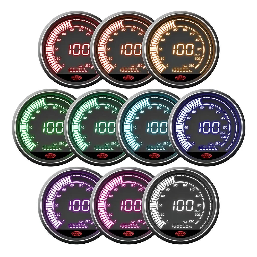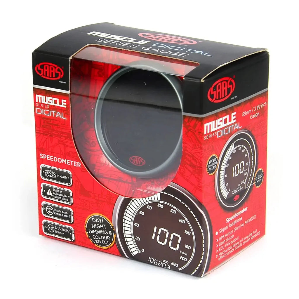 Presenting the latest in SAAS Muscle Series Digital Gauges - our full featured 0-220 KPH Digital Speedometer designed for in-dash installation. The new for 2022 SAAS Muscle Digital Series gauges give you digital readings with the added advantage of dimmable backlighting. No moving components allows for a vibration proof environment making these gauges ideal for 4WD, offroad and performance applications.