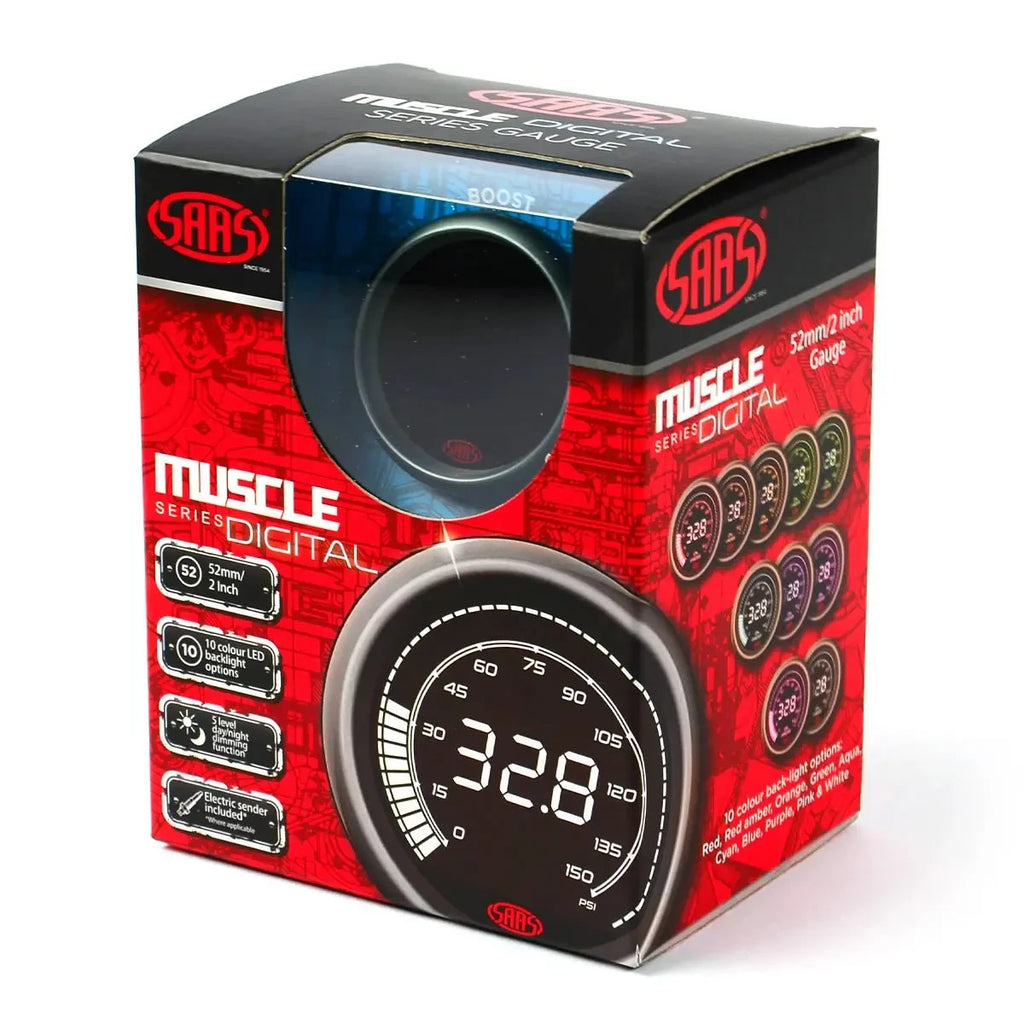 The new for 2021 SAAS Muscle Digital specialty gauges give you digital readings with the added advantage of dimmable backlighting.