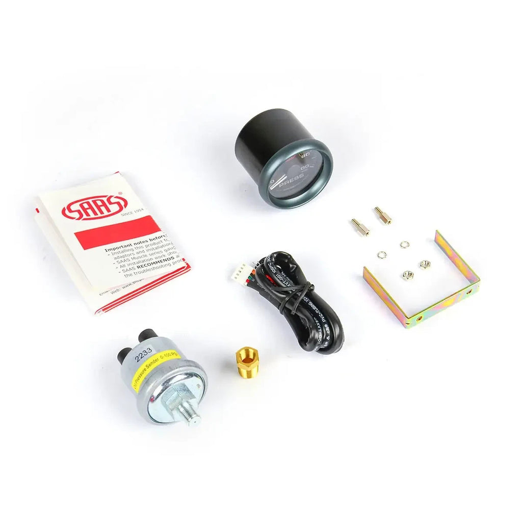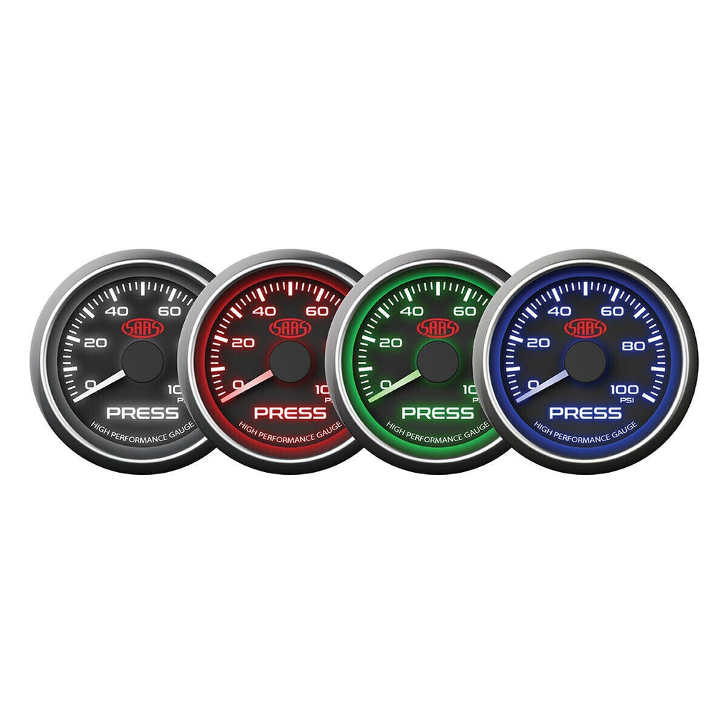 SAAS Performance Oil Pressure 0-100PSI 52mm Analog Gauge Black Face 4 Colours