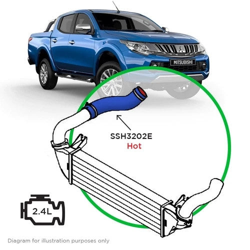 The SAAS SSH3202E is designed to replace the factory turbo to intercooler hot pipe (refer to layout diagram).