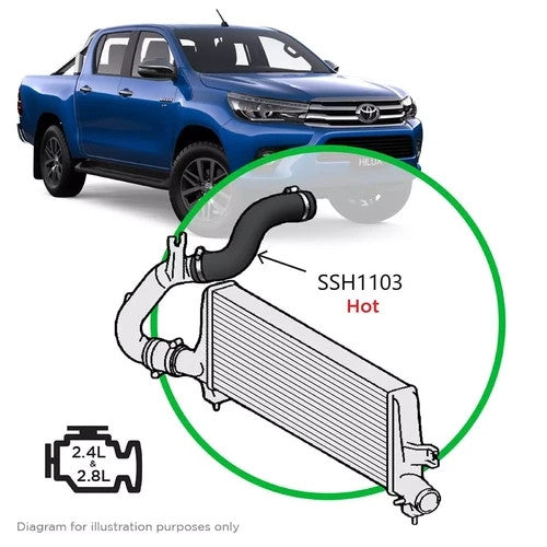 SSH1103 - SAAS Silicone Intercooler Pipe Hot Side Top For Toyota Hilux 2.4L 2.8L 1GD 2GD