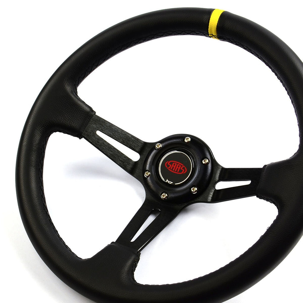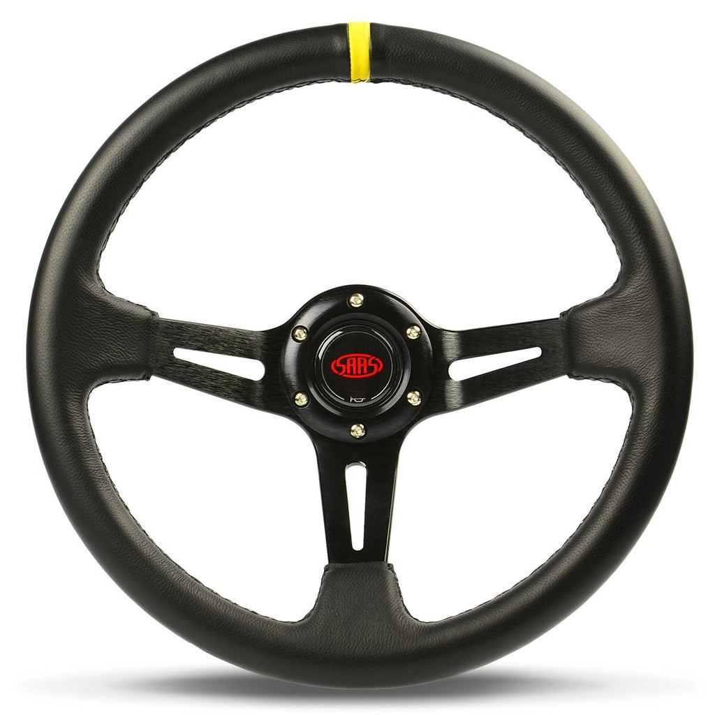SAAS Steering Wheel Leather 14" ADR Deep Dish Black Slotted + Indicator