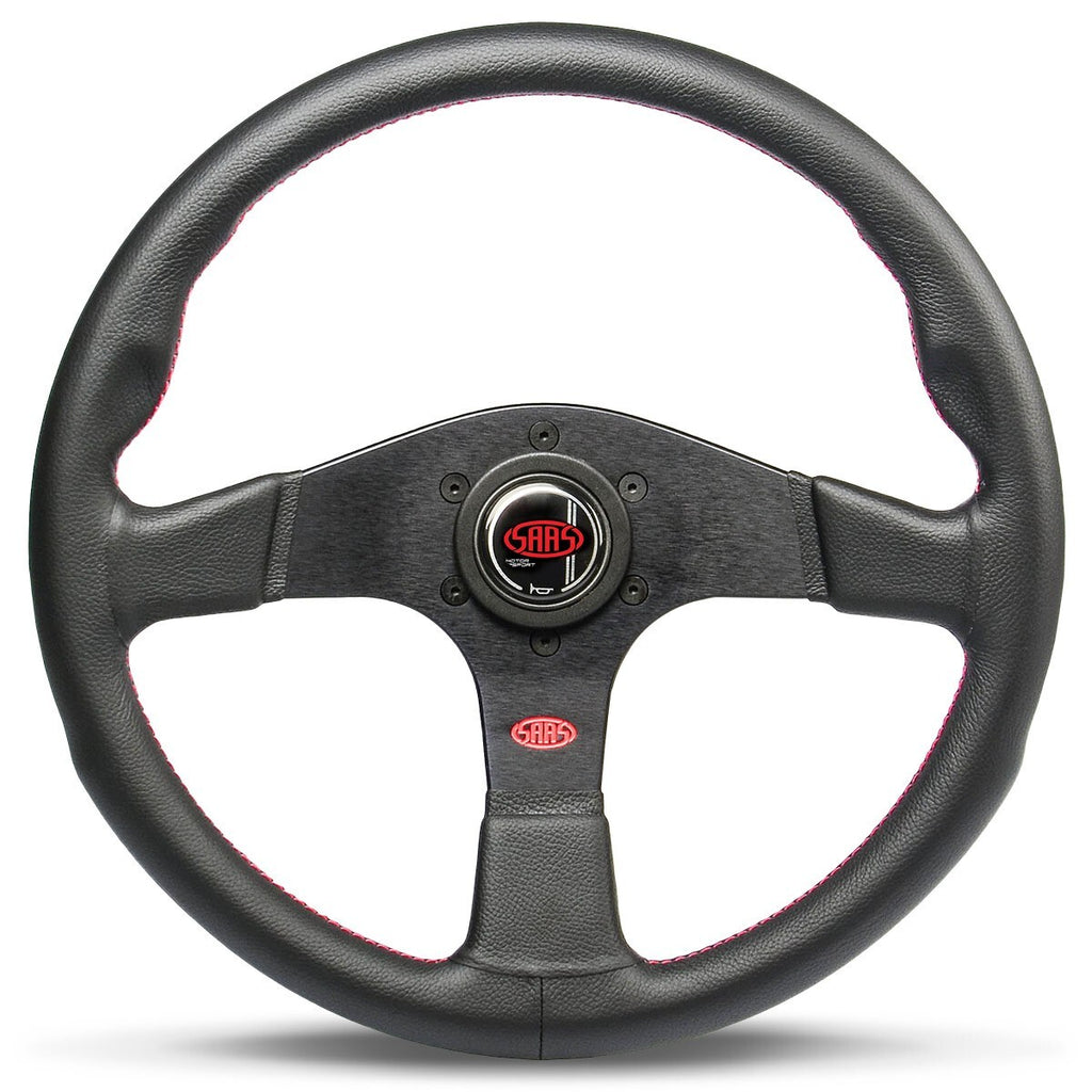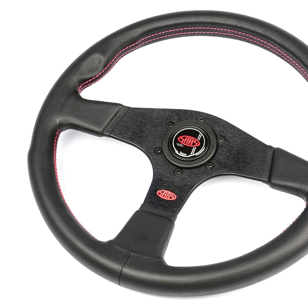 SAAS Steering Wheel Leather Corsa 14"/350mm Contoured Grip Red Stitch