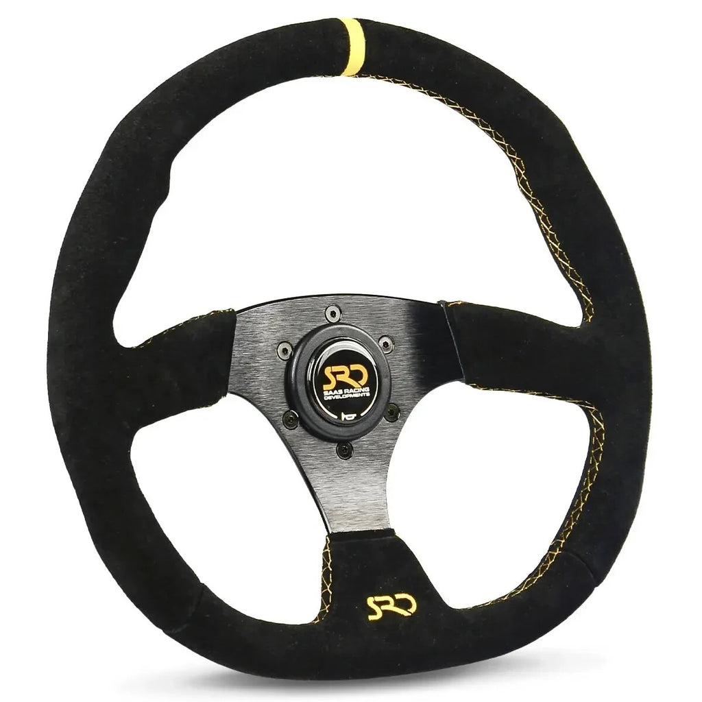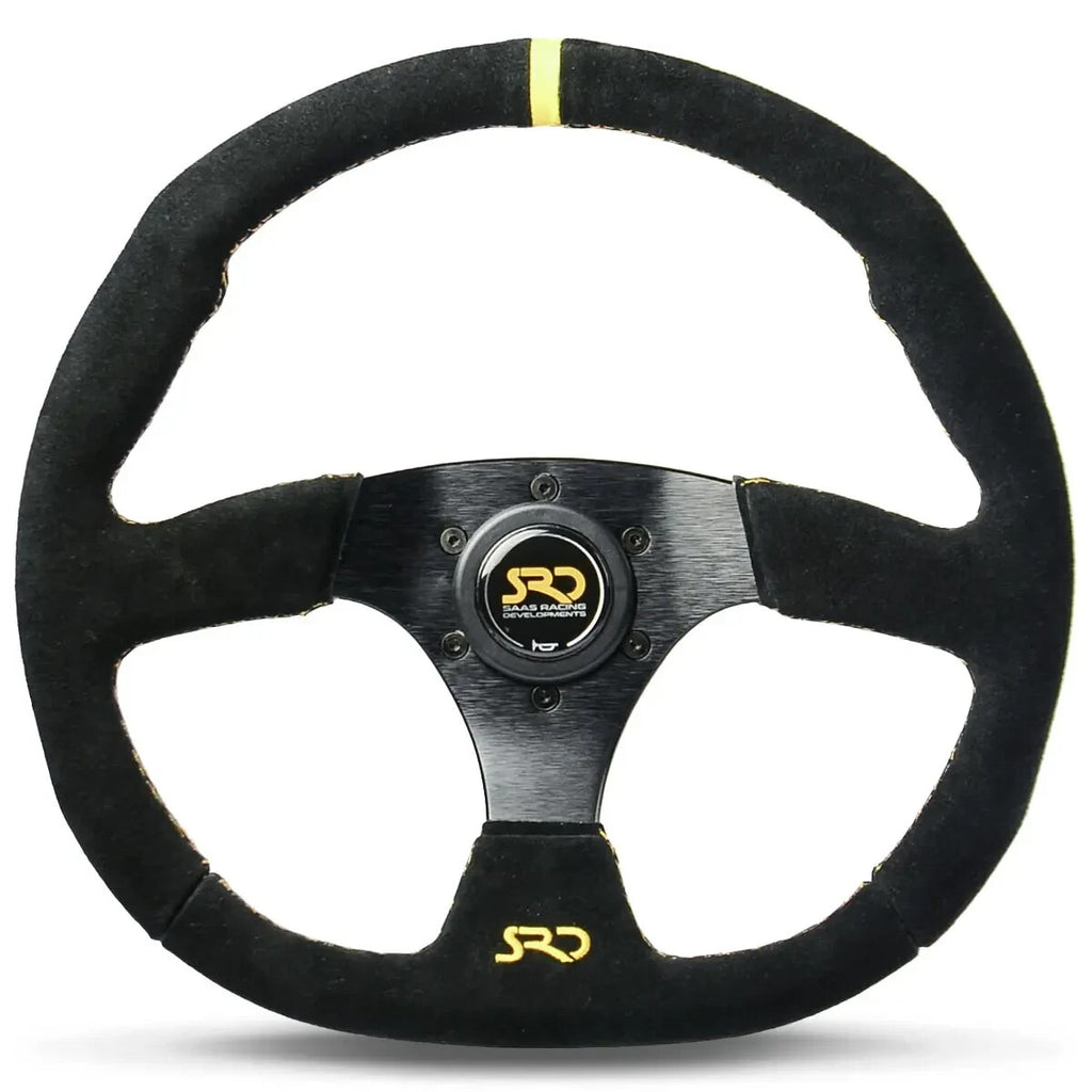 SAAS Steering Wheel Suede SRD 350mm ADR Black Flat Bottom + Yellow Indicator