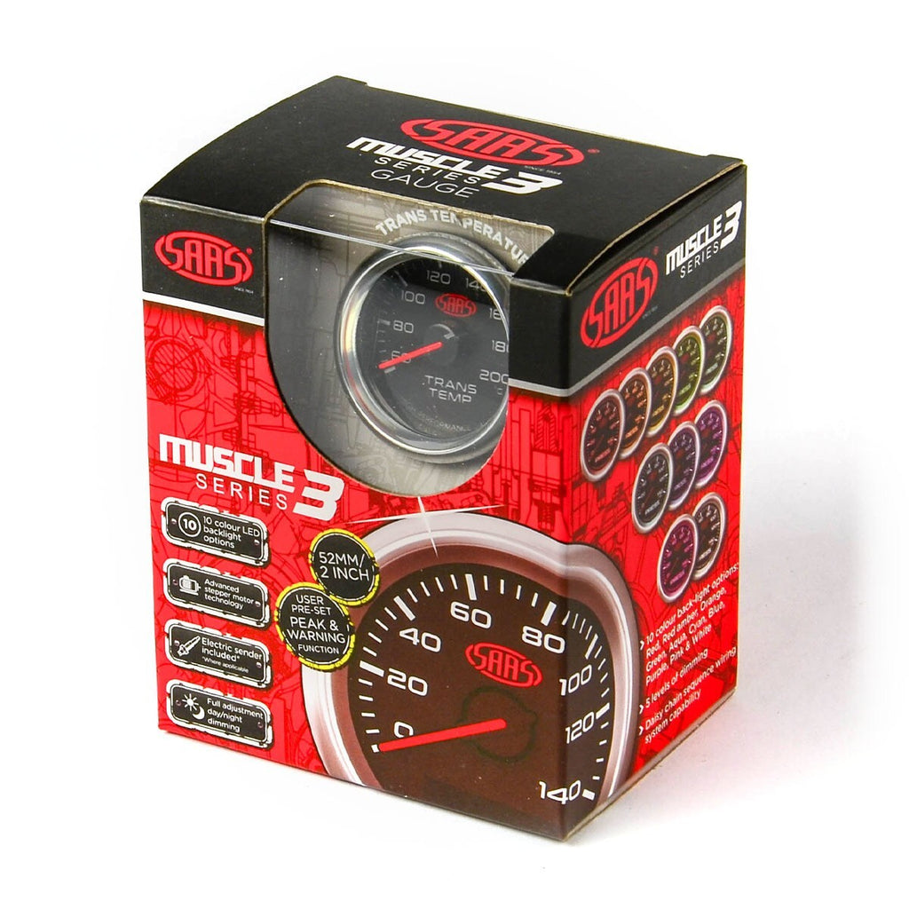 SG32222 Trans Temp Gauge 60°-200° 52mm Black Muscle Series 3