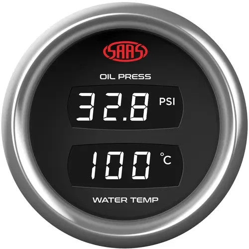 The new for 2021 SAAS Digital specialty 4WD gauges give you dual digital readings in a now dimmable setting. Monitor your critical Oil Pressure and Water Temperature with these accurate, stylish and easy to read series.
