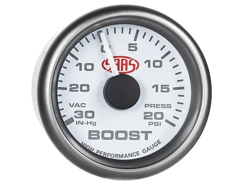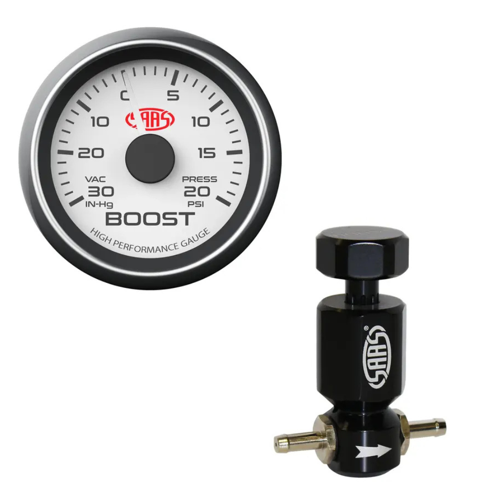 SAAS Turbo Boost Gauge Boost Controller 52mm 2in & -30hg > 20PSI White Petrol
